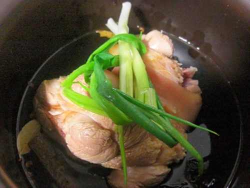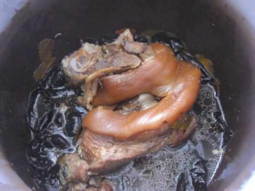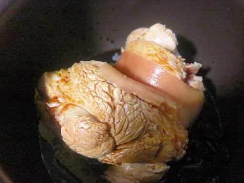 4冰水里取出小胖蹄,放到砂锅中,淋上生抽,盐,黄酒