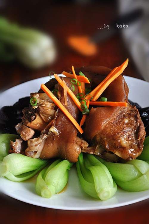 2等黑木耳泡发的时候就把小蹄膀洗净,放到沸水里,把血水煮掉,煮完放到冰水里,会Q调Q调的