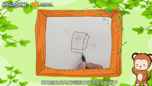 再用黑色的马克笔画出海绵宝宝的裤子。