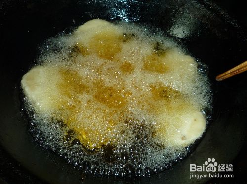 锅内添油,待油七八分热时,将糖糕放入油锅内。