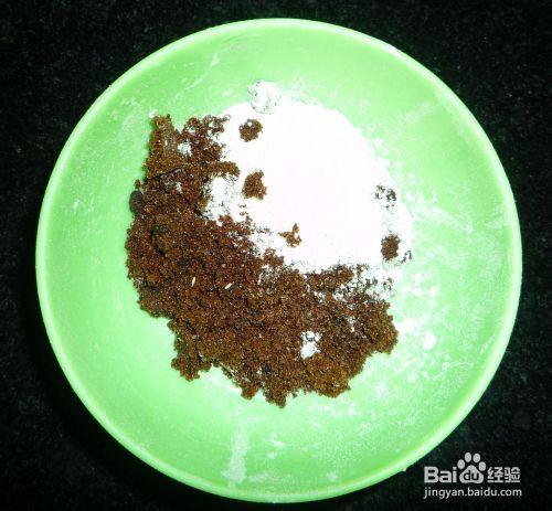 向小碗内放入适量红糖,然后向红糖内拌入少量面粉,搅拌均匀。