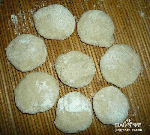 再次揉面团,然后将面团分成一小团一小团的小面团,将小面团用手捏成饼状,加入一点红糖粉,封口,用双手轻拍,即可放在面板上,待油炸。