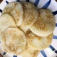 在锅里用刷子刷上一层油,放入芝麻饼,中小火,煎至两面金黄就可以出锅了。