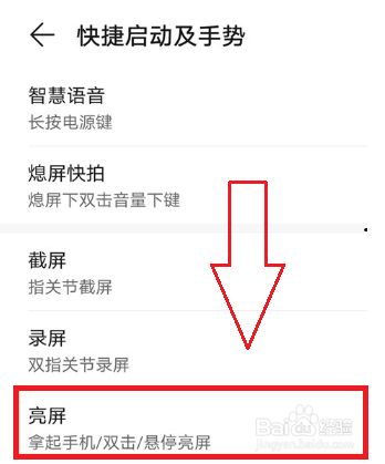 第三步,点击进入【亮屏】,将【双击亮屏】右侧的开关打开。