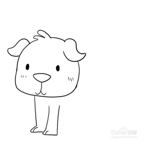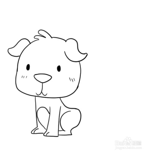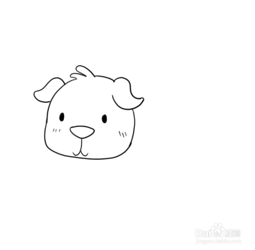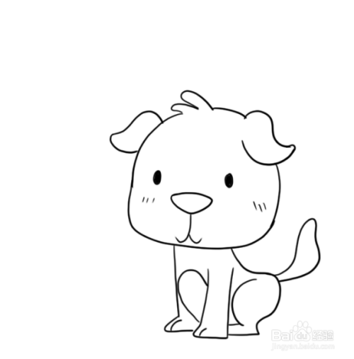 接着画上小狗小小的眼睛,尖尖的鼻子和嘴巴