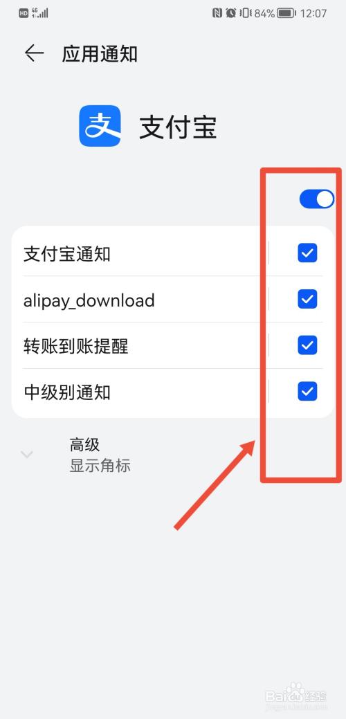 进入新消息通知界面,点击支付宝通知服务,去开启
