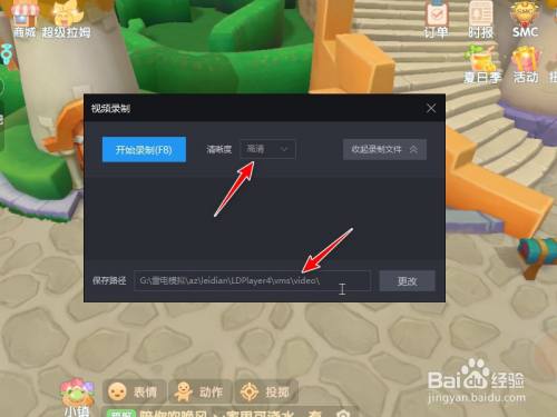 设置视频的清晰度和录制文件的保存路径。