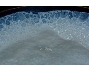 将花生豆浆放到锅中煲煮,之前只用了100ml的水调出来的豆浆是很浓的,所以放到锅中煮时又另外添置了一些清水。