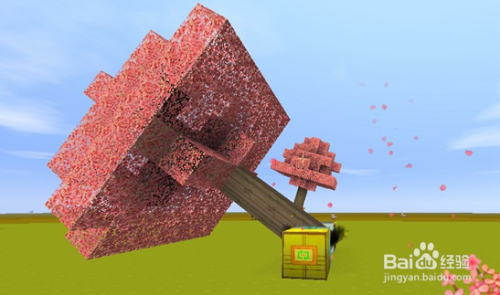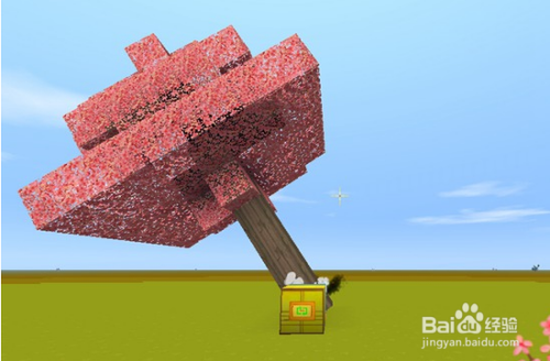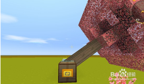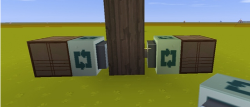 如下图,在树根部,对向放置2格转轴方块(先放一个电石灯,在对着电石灯放转轴方块)