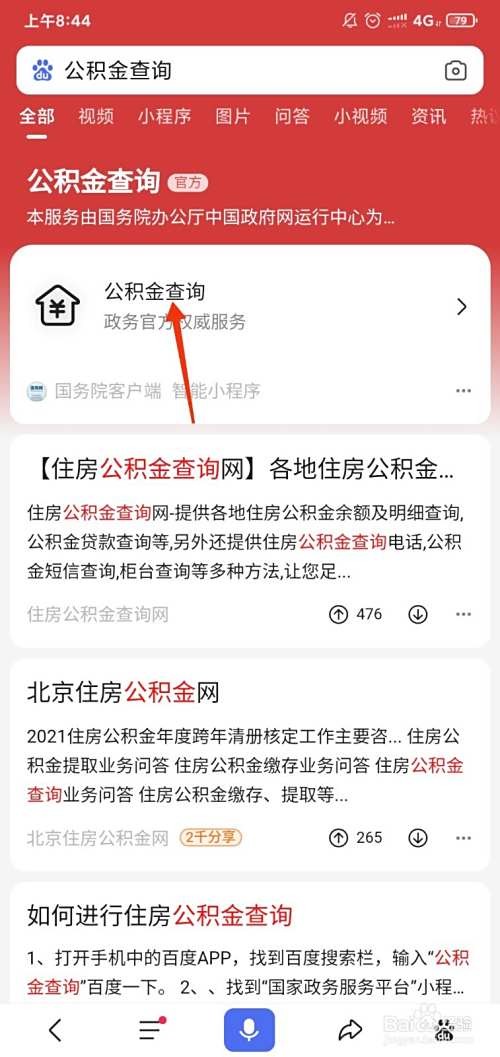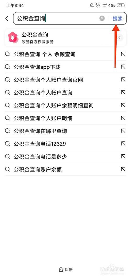 输入公积金查询,点击右上角的搜索。