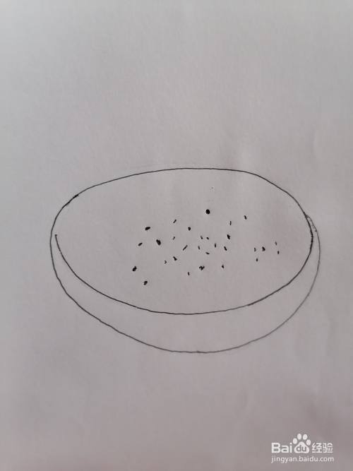 在纸上画一个大椭圆,在中间画一些芝麻粒