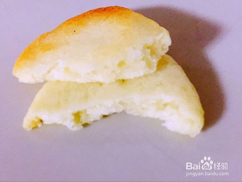 将饼干掰开看,里面还是比较松软的,但是比起黄油饼干来说,要有嚼劲得多。