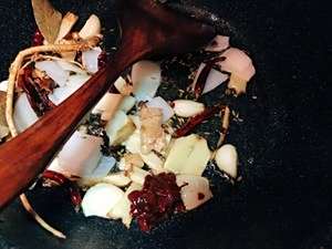 适量油,依次爆香姜片+蒜粒+一半的洋葱