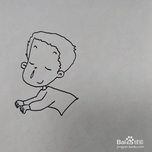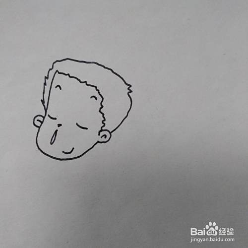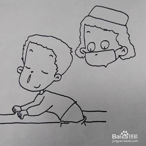 然后画出小孩哭鼻子的表情,鼻子里流出的长长的鼻涕
