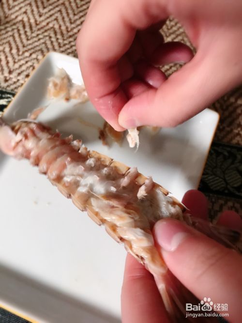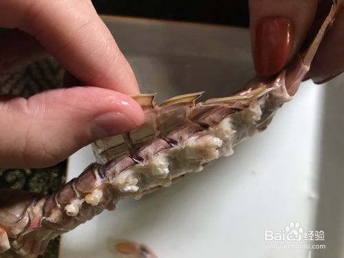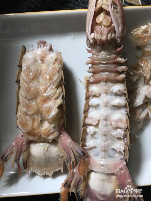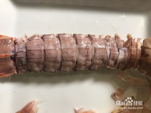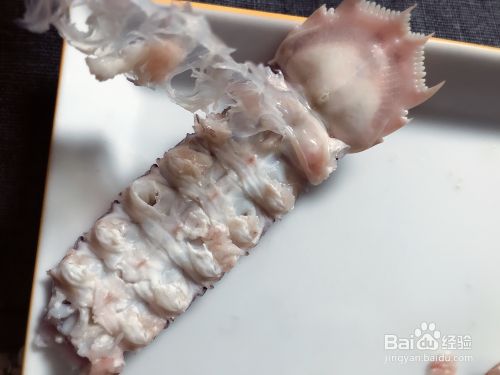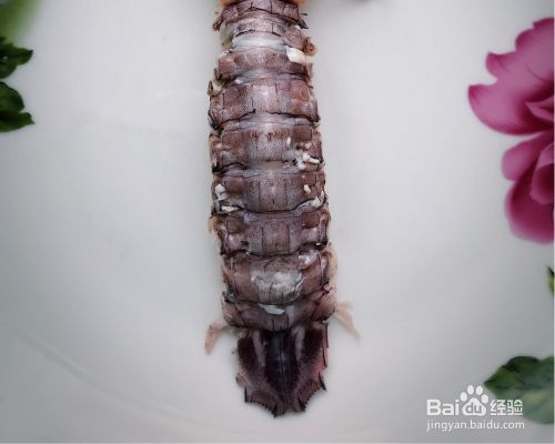 把大虾转过来,轻轻地把脚上的胡须拉到肚子下面,两边的长胡须拉下来