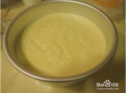 拌好的面糊倒入模具中摔几下