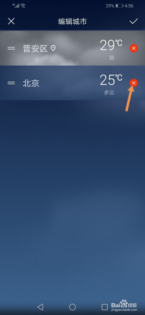 在管理城市界面,手指长按你想删除的城市,然后点击城市名称右边的X。