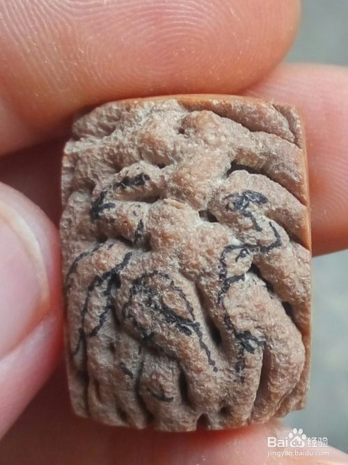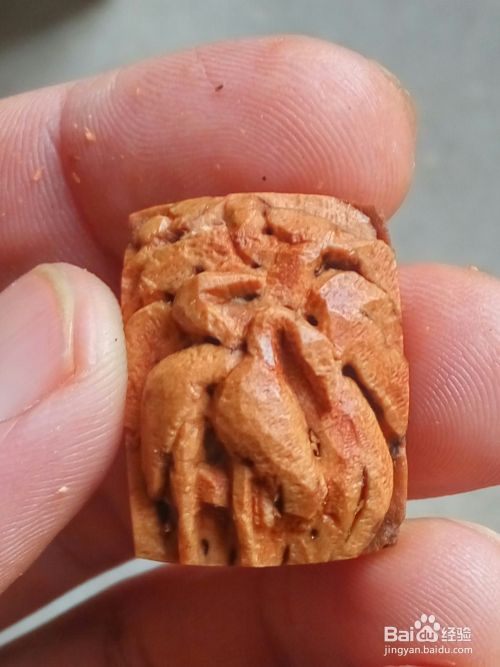 桃核打磨成方形,观察桃核纹路,安排一下仙鹤跟松树的位置