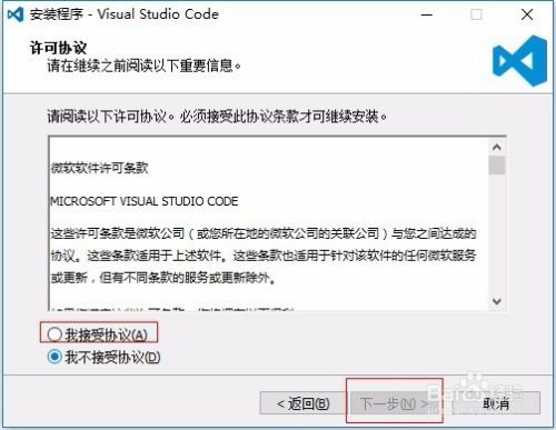 进入许可协议,点击“我接受协议”选项;点击下一步