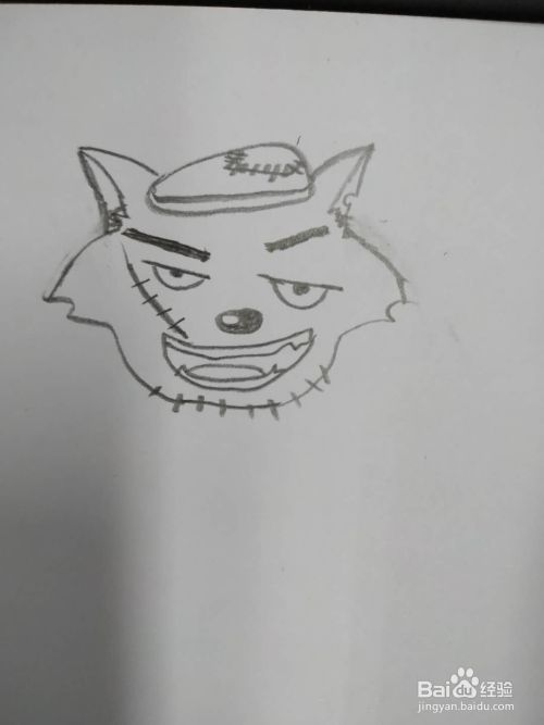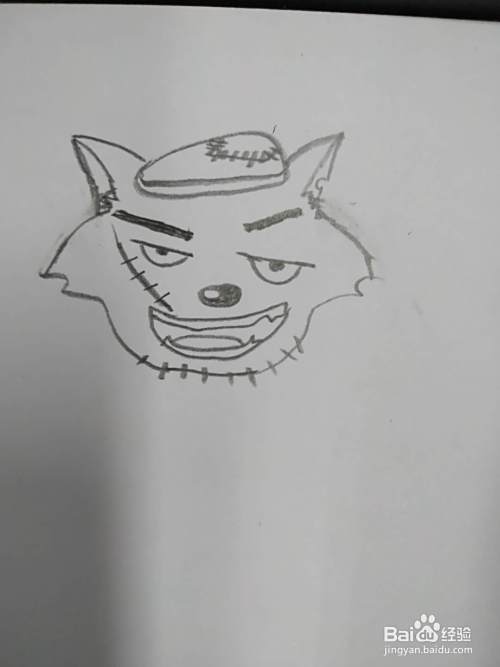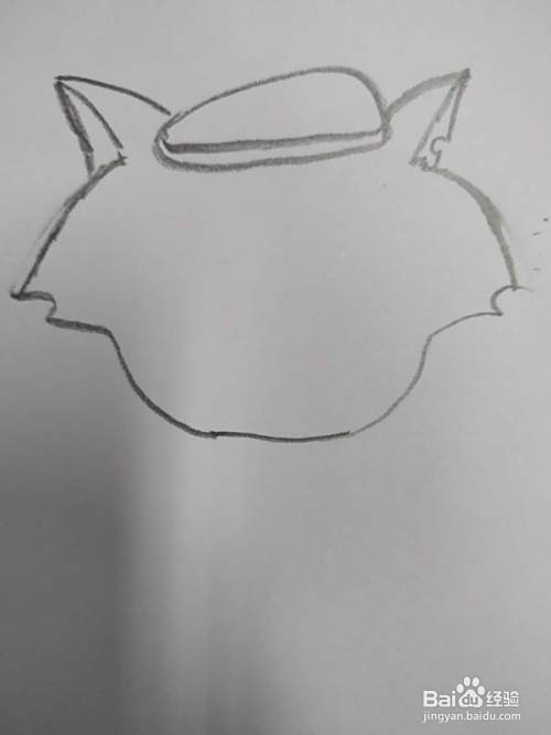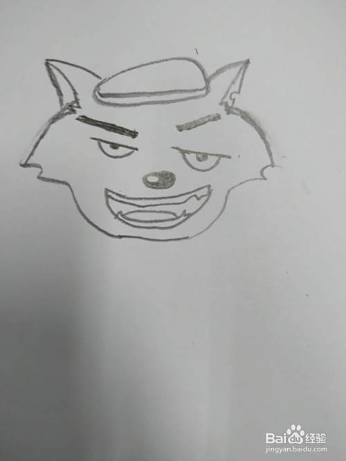 把脸部画全,上边较宽,有尖刺,那是灰太狼的茸毛,下面窄;