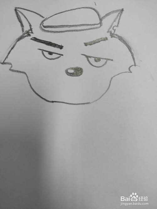 接着我们画上灰太狼的眉毛,眉毛较粗黑,画上眼睛,眼神比较邪恶,画上鼻子;