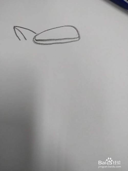 首先画一个三角形的耳朵;