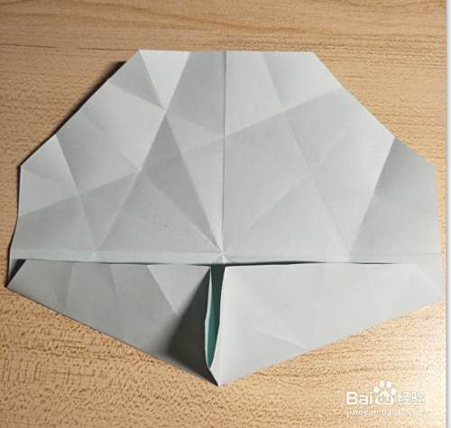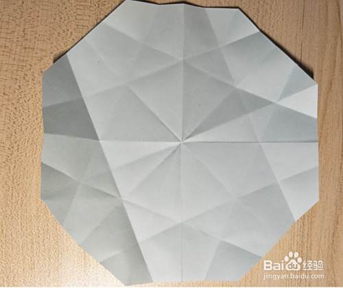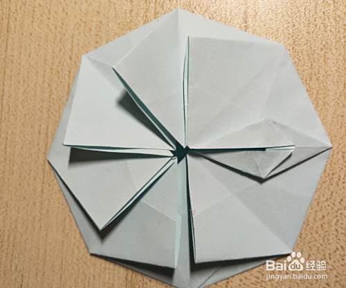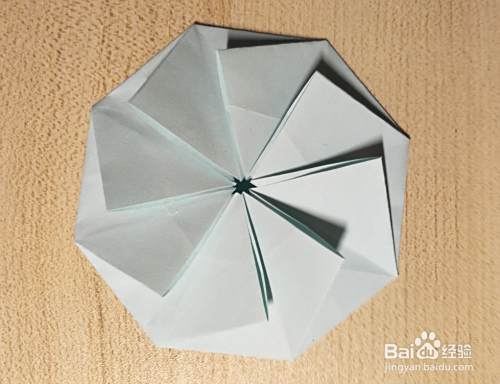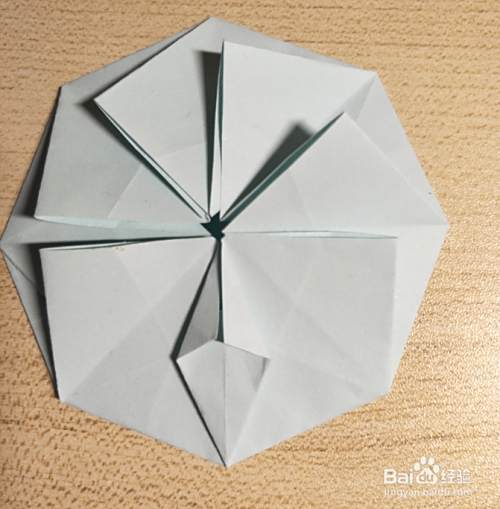 八个角均同时折向中心点,形成的夹角压出,如图所示: