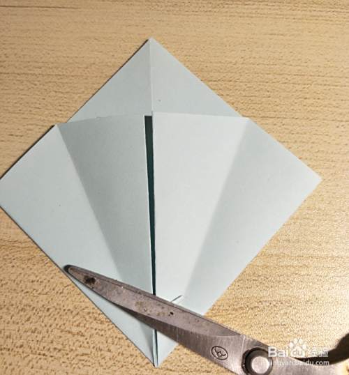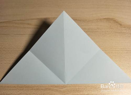 折纸翻面,两边角折向中线后,将上方角剪去,如图所示: