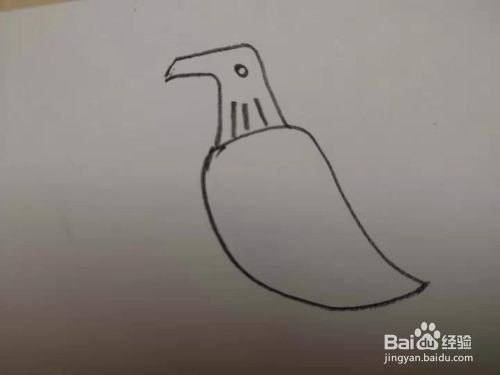 第二步是画上眼睛和颈部的羽毛