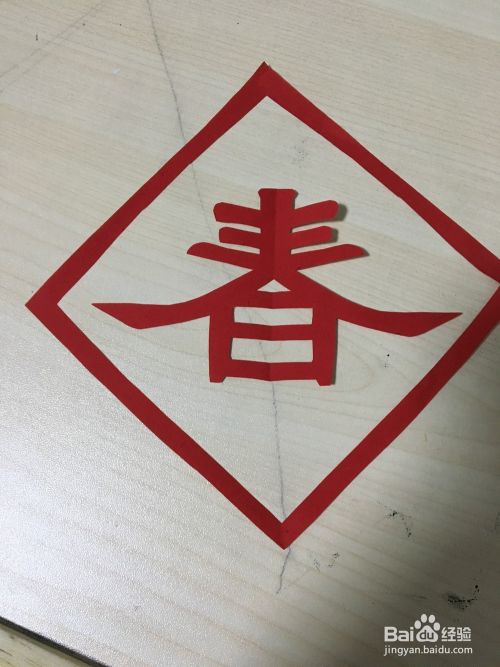 把剪好的春字打开放入棱形框内正中间。可以用胶水将它贴在合适的地方。
