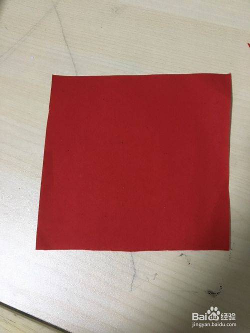 取一张正方形红色纸两角对折,用笔在边上画上直角线。用剪刀沿钱剪完,一个正方形的方框出来了。