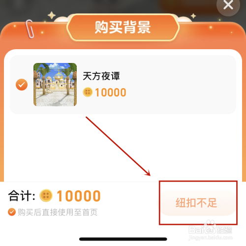 最后,在购买背景页面中,使用足够的纽扣币【购买】即可。