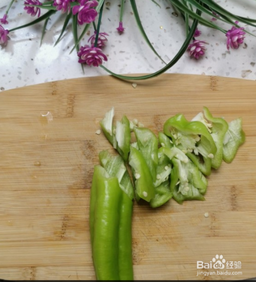 青椒也切小块。