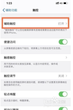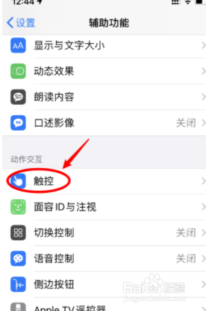 在辅助功能页面下,浏览并找到触控功能,点击选择打开