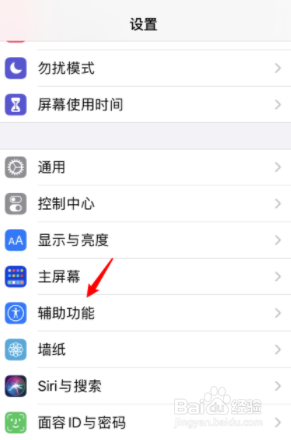 在设置功能界面中,找到并点击辅助功能,打开该功能设置界面