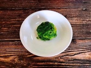 将洗净的苦苣放入开水中焯熟捞出,晾凉后用手攥一下把水挤出备用。