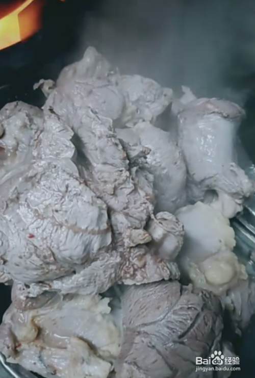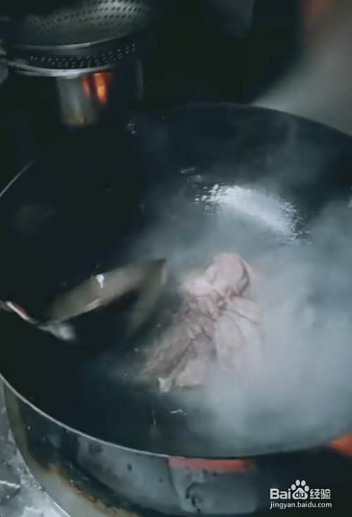 1,首先,起锅烧水,将准备好的生牛肉。放在热水里过一遍。