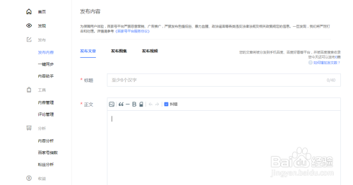首先,你要申请有百家号的作者,进入百家号主页面之后,点击发布文章,之后进入编辑和发布文章,这样是能够升级百家号指数的。