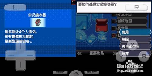 在背包里找到重要道具,在重要道具里找到实况接收器。