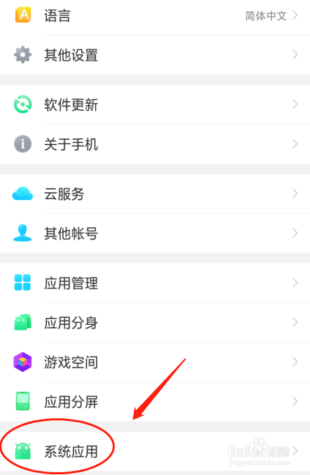 2、然后点击进入系统应用选项。