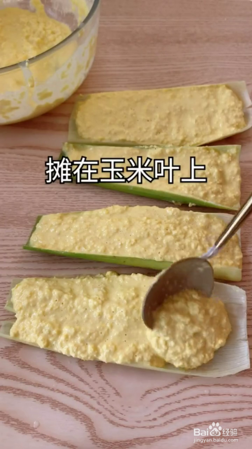 然后将它们铺在清洗干净控干的干玉米叶上面,放上红枣点缀