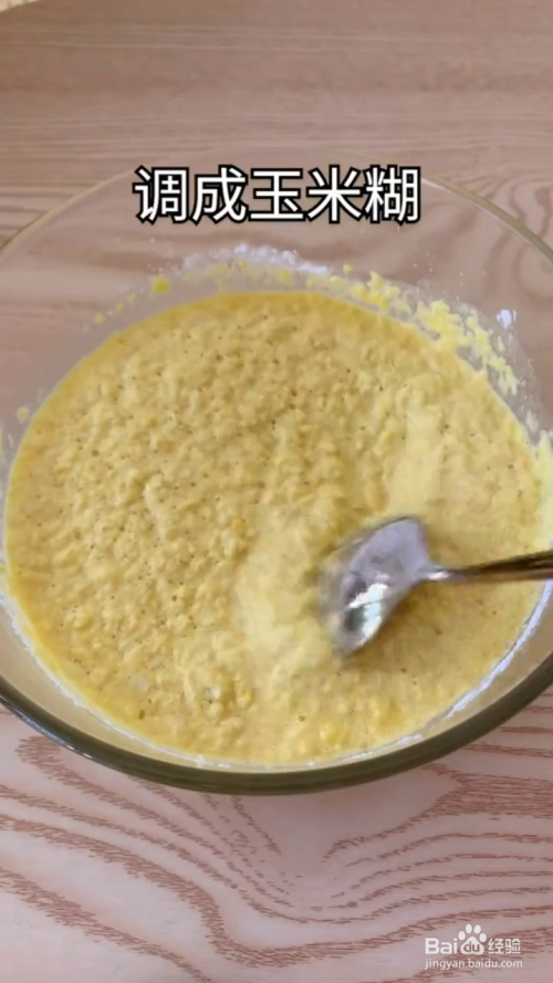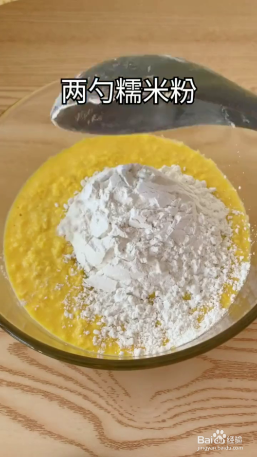 然后再在里面放入白糖,糯米粉,搅拌成较稠的玉米面胡