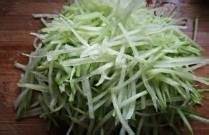 早市上,农家刚拔的青萝卜,不知道是什么品种,又脆又甜,跟本地青萝卜有点区别。(我们本地青萝卜口感艮,生食辛辣)。擦成丝清炒一下,色泽翠绿,入口咸鲜,唉,真招人喜欢。