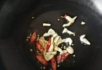 锅内适量花生油烧热,姜蒜,小米椒炒出香味儿。