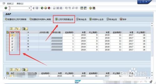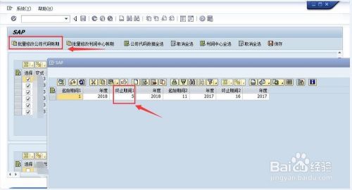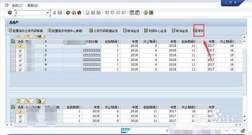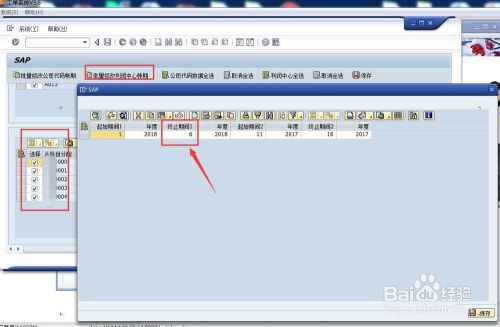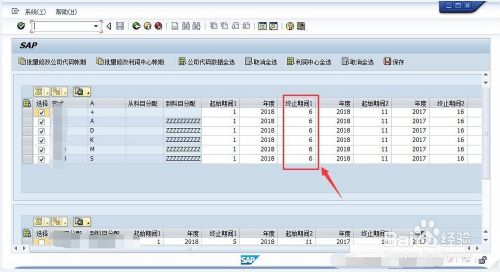 在选中所有公司后,点击菜单“批量修改公司代码账期”,弹出修改账期的页面,因为我们只是开启6月份账期,这里选择“终止期间1”中修改成6保存就可以了。我们可以看到期间都变成6。