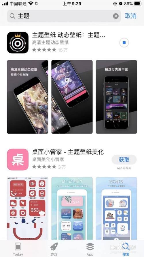 以iPhone12的ios14.3系统为例,通过第三方的主题软件进行下载,进入应用商店,搜索一个主题app,点击下载按钮,主题商店就下载好了。