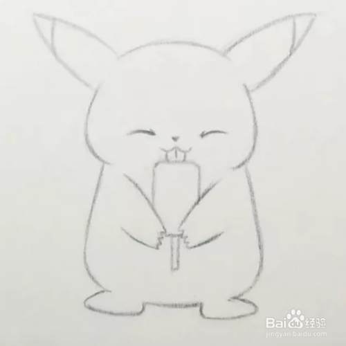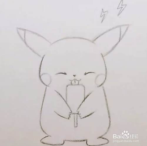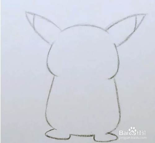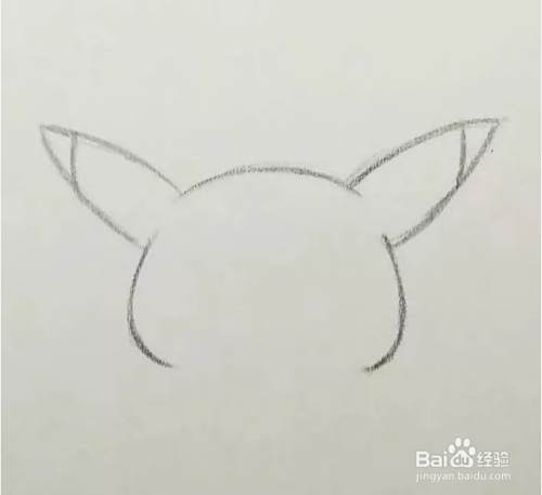 第三步:根据耳朵的位置,画一个“( )”括号,皮卡丘的脸就出来了。