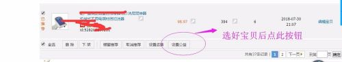 选择出售中的宝贝,如果全部的宝贝都想设置公益宝贝,就点“全选”,如果只是想设置其中的某些宝贝,就“勾选”想设置的宝贝