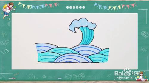 最后给大海涂上蓝色,这样的大海就完成啦。