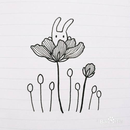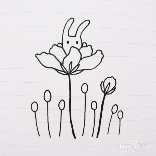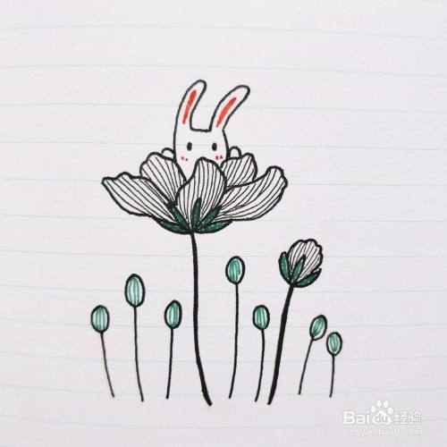 然后我们在它们的后面画上一些衬托它们的一些小骨朵